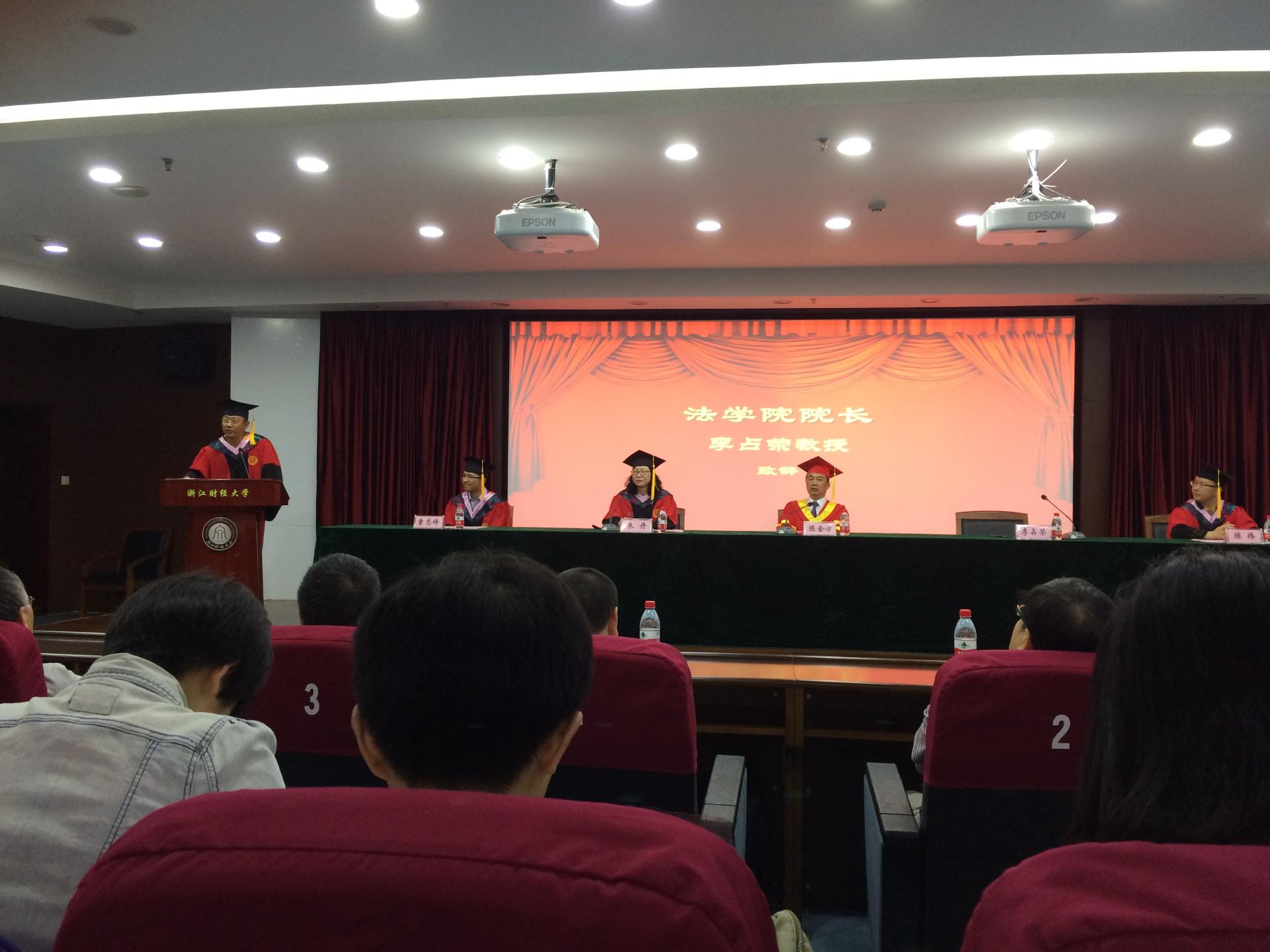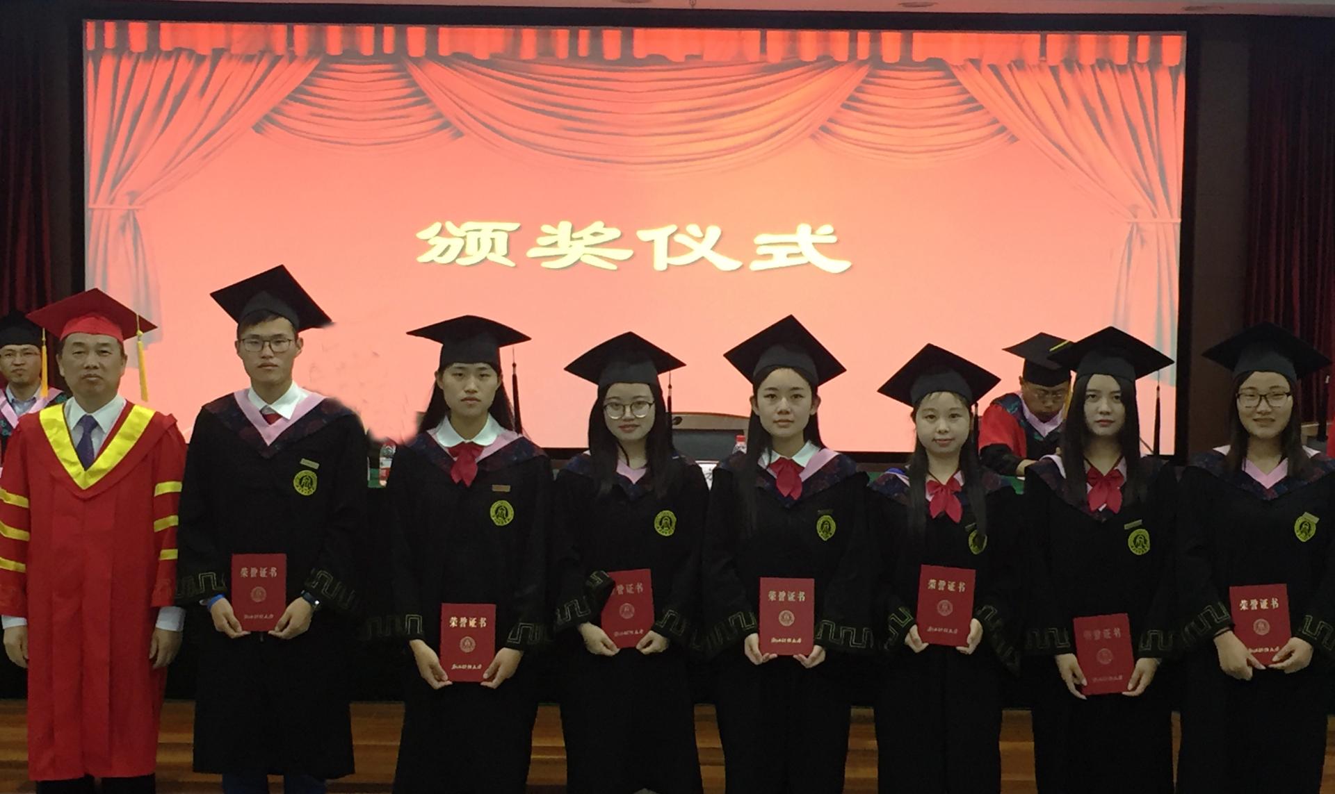 之后是荣誉表彰环节,副院长童志锋老师宣读司考优秀班级、考研优秀班级、考研优秀个人、司考标兵、学生工作先进个人名单,并宣读2016届毕业生获得毕业证书、学位证书名单。党委副书记陈伟老师宣读省、校、院三级优秀毕业生名单及2016届校友联络员名单。随后,主席台领导及出席的老师分别为获奖的同学们颁发了荣誉证书和聘书。