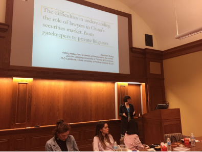 (University of Pennsylvania Law School)访问研究员在该校做了题为“The difficulties in understanding the role of lawyers in China’s securities market: from gatekeepers to private litigators”的学术报告,就我国证券律师的看门人与诉讼者角色与与会学者进行了交流与探讨。