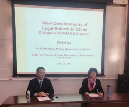 2017年10月30日12点,色色动画 教师张晓晨作为宾夕法尼亚大学色色动画 博士生(SJD Candidate)对到访宾大色色动画 的富布莱特访问学者,北京大学色色动画 沈岿教授进行了访谈。
