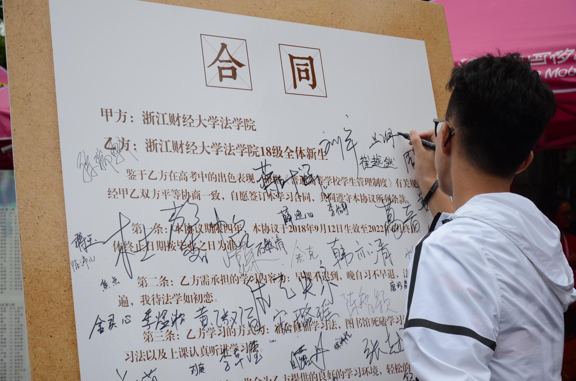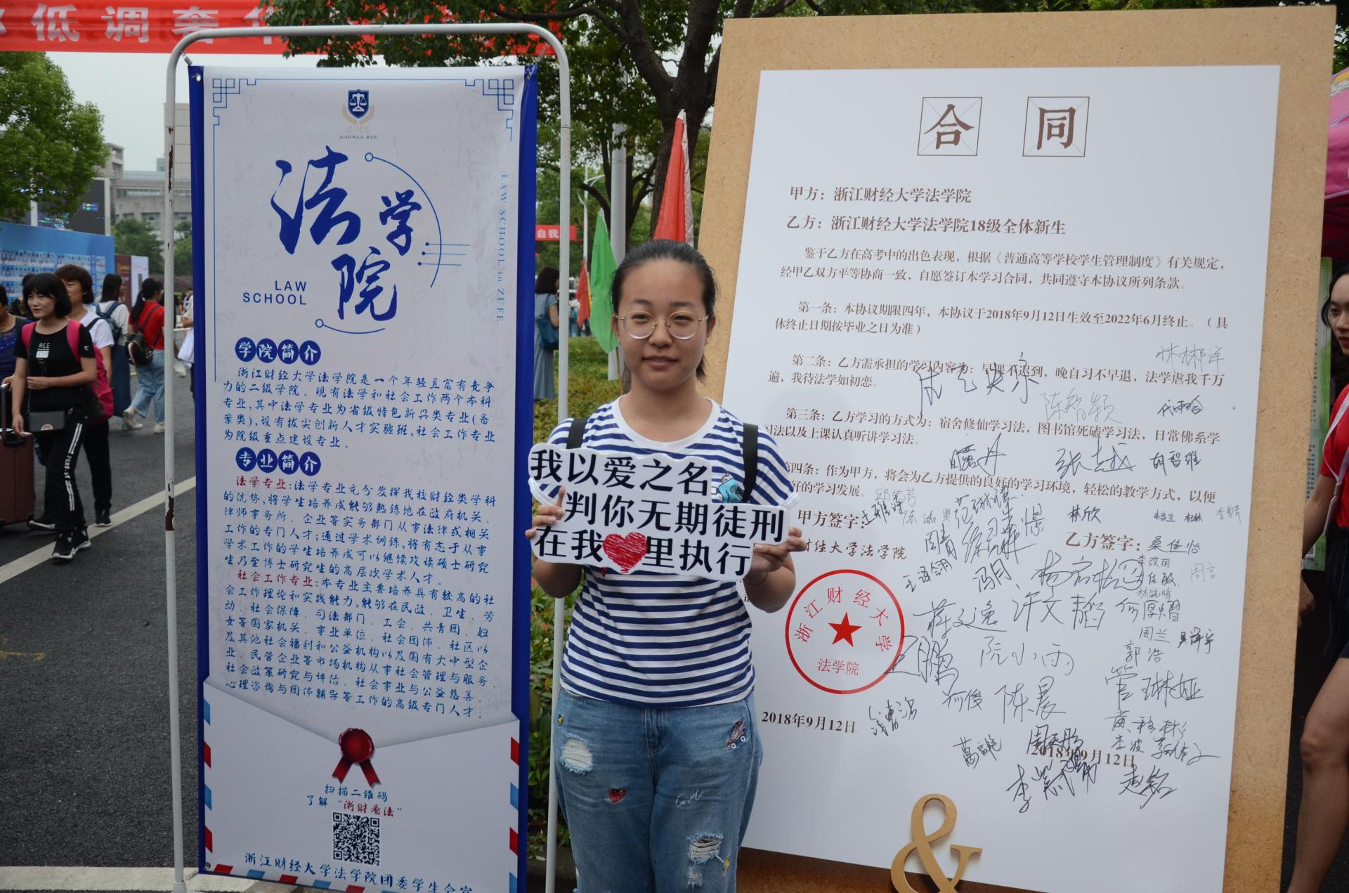 报到现场,新生们在学生会提前准备的“新生合同书”展板上郑重签下自己的姓名,向学院保证今后要做一名合格的法学生;并拿着关于法学的“土味情话”板,在“合同”前拍照留念,留下他们在大学开学第一天青涩的身影。经过了签到、拍照后,新生们在志愿者的带领下办理入学手续,每人拿到了一份沉甸甸的资料袋,里面包括入学报到后的各项安排和新生入学事宜日程表等重要资料。最后,每位新生都领取了幸运小饼干。拆开塑封袋轻轻一掰,写着寄语的纸条滑出来,满载全院师生对新同学的美好祝愿与期盼。伴随着最后一名新生的到来,色色动画