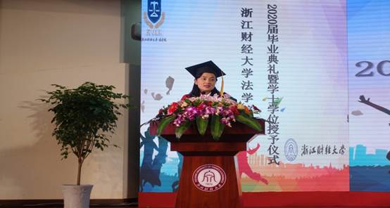 毕业生代表余嘉颖同学谈到自己的大学四年,最大的收获是真正开始自己为自己做决定,在追逐自己的目标中,收获了自己做自己决定的勇气。她充满感恩之心,感谢老师的辛勤教导,感谢学院筹备这样宝贵的毕业典礼,这将成为所有毕业生永生难忘的回忆。