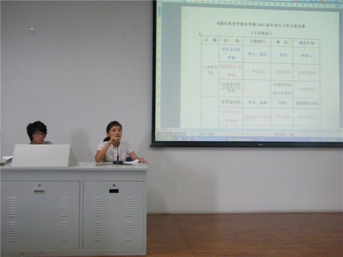 (学办主任兼分团委书记王文婷老师介绍2011届毕业生大体工作安排)