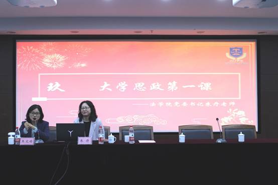 在本科生迎新大会暨新生家长会结束后,学院党委书记朱丹老师为2020级本科生上大学“思政第一课”——中国共产党人的初心和使命。