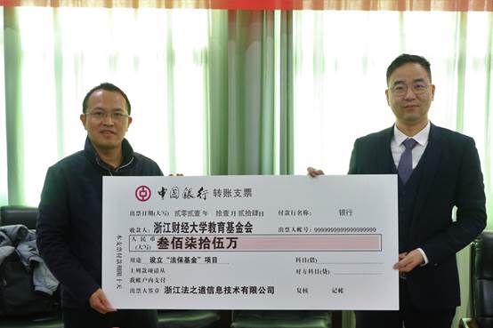 11月24日,法保基金捐赠签约仪式在我校下沙校区举行,浙江法之道信息技术有限公司出资375万元成立“法保基金”。校党委副书记黄建新、浙江法之道信息技术有限公司创始人兼CEO李俊凯等出席捐赠签约仪式。