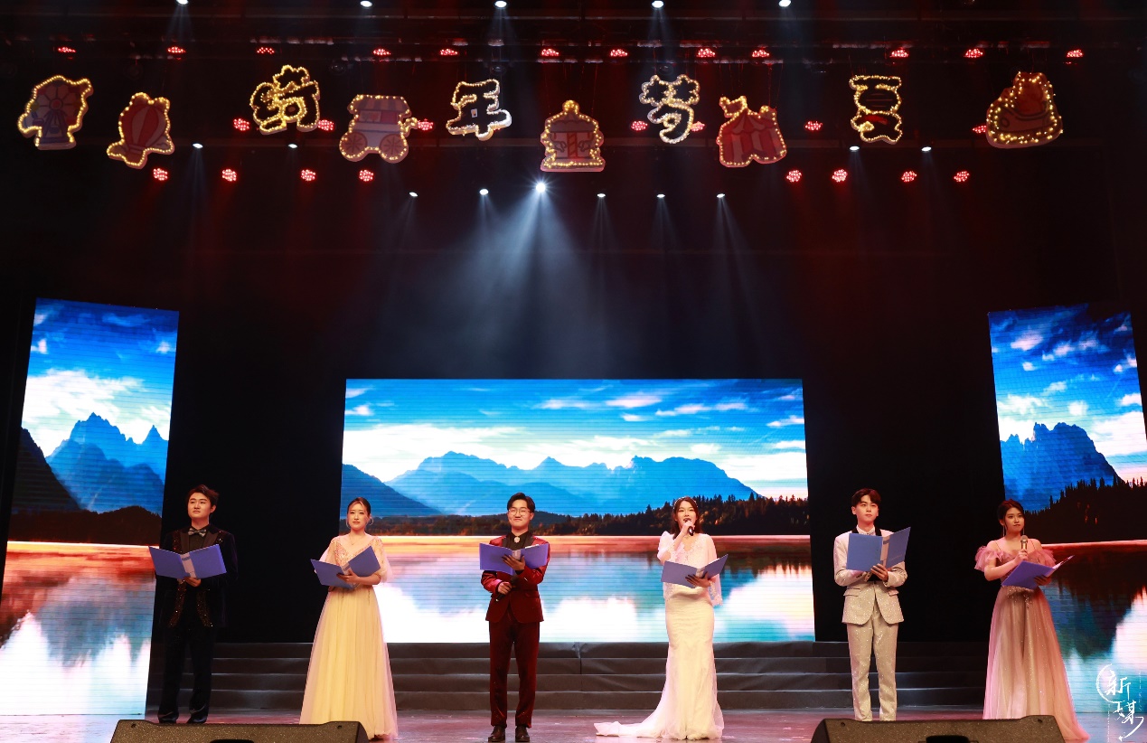 “袅袅腰疑折,褰褰袖欲飞。雾轻红踯躅,风艳紫蔷薇。”充满异域风情的新疆舞拉开了晚会的序幕。随后,色色动画