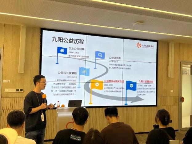 九阳在公益项目和国家重大灾害中的付出向我们展现了企业慈善将产品与慈善救助融合的特色和企业的担当、责任感与公益情怀。同时,黄秘书长抛出了“可持续消费——你会为企业的善意买单吗?”引发了同学们的思考。