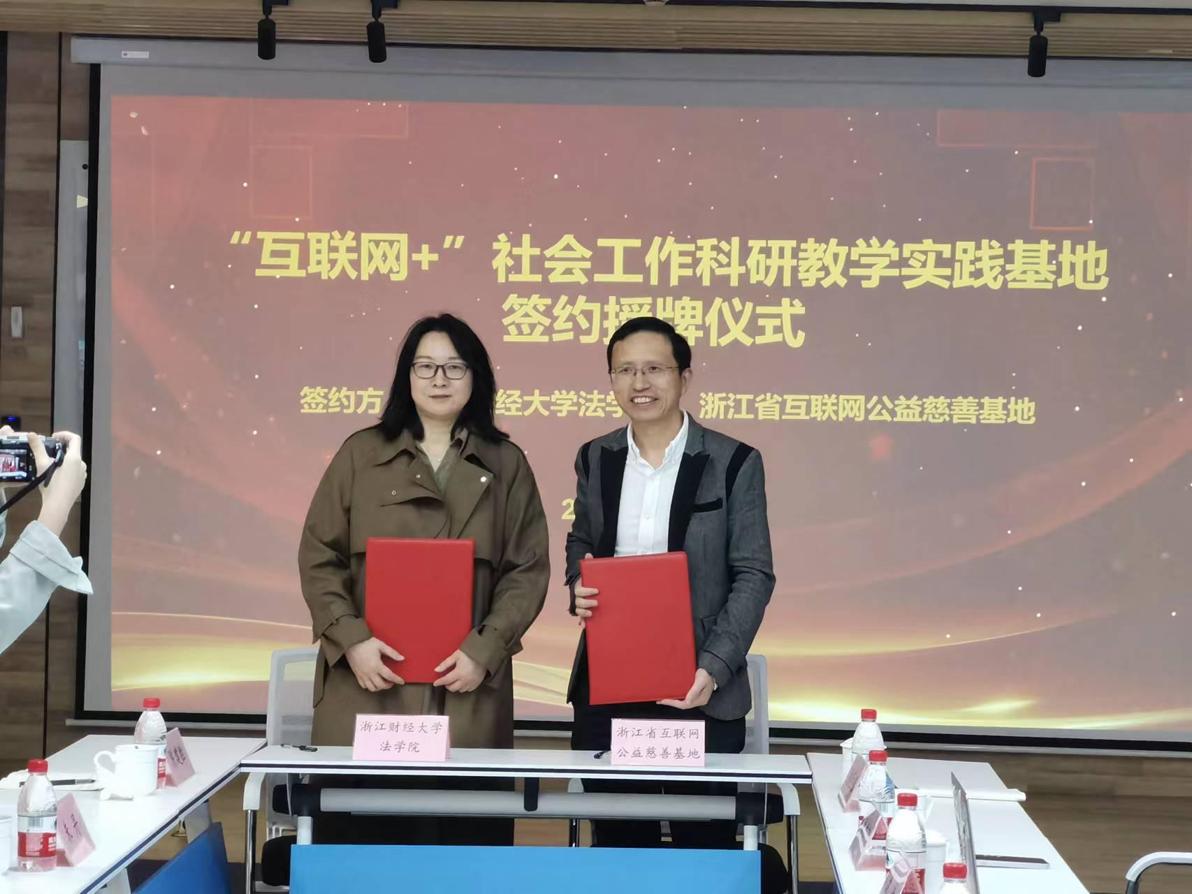 紧接着是实践基地签约仪式。基地主任裘涵与朱丹老师分别代表浙江省互联网公益慈善基地和色色动画