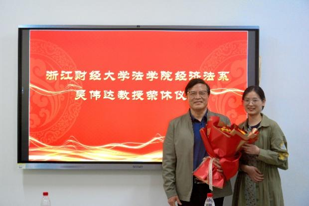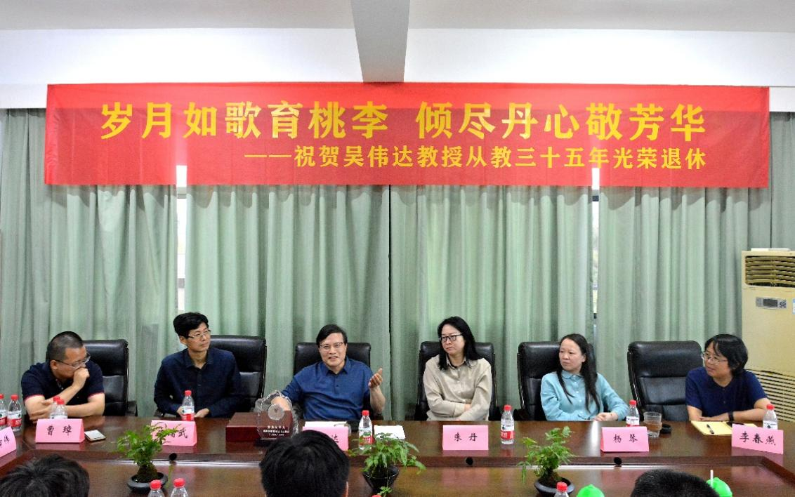 祝贺吴伟达老师光荣退休,并高度评价了吴伟达三十五年来的无私奉献,肯定了他为经济法专业、财税法学会和学院的发展所做出的贡献,为人温润如玉,是一位谦谦君子。