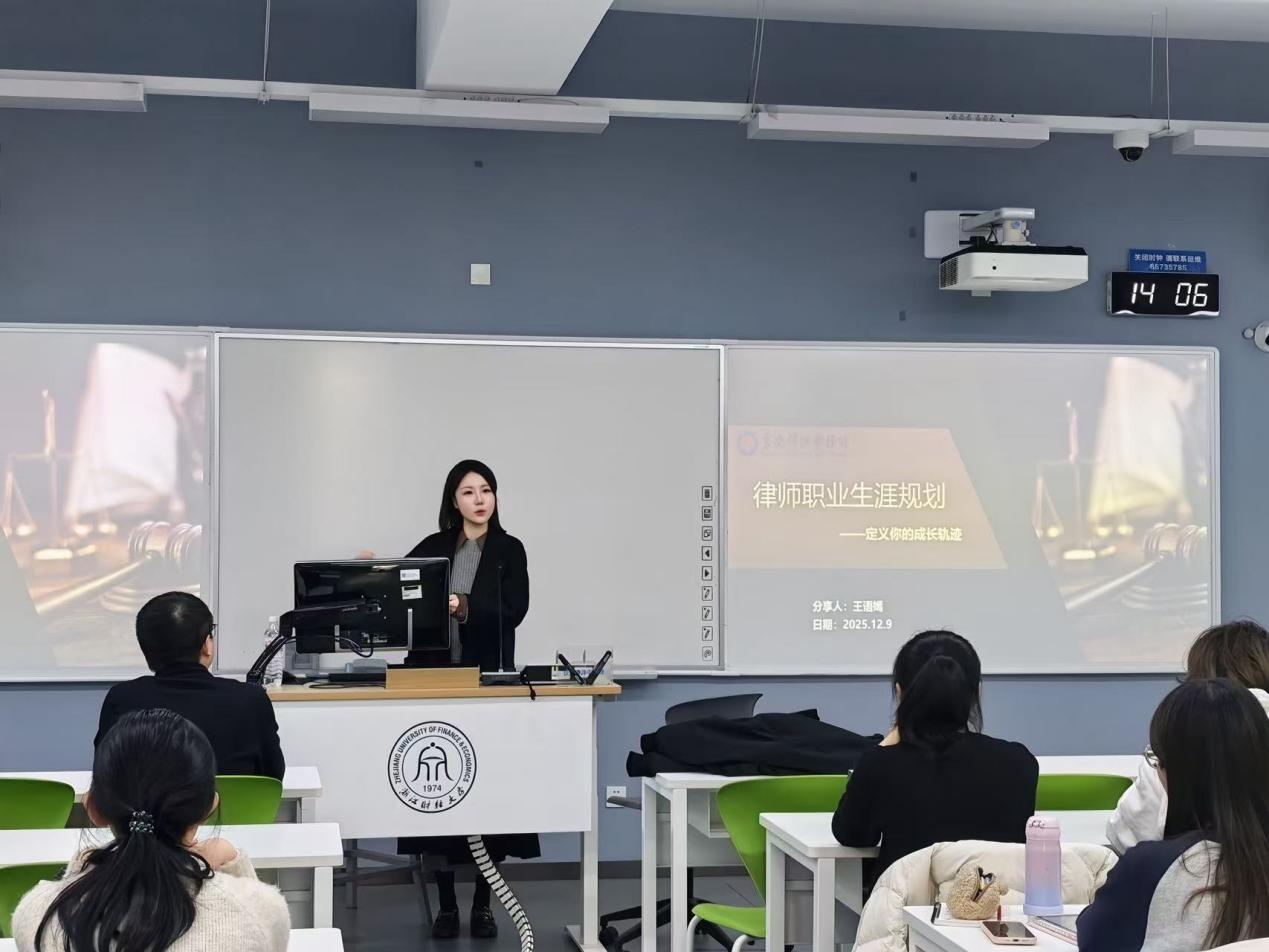 25MAQ班第一期“笃行职业规划讲座”在A108教室顺利举行。本次活动由该班班主任钱炜江老师主持,并邀请浙江京衡律师事务所高级合伙人王语嫣律师担任主讲。