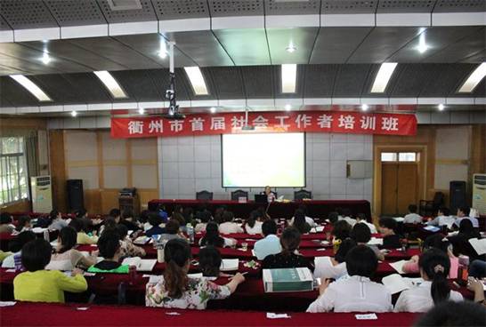 院长助理、社会工作系主任童志锋副教授,赵琼研究员、韩宗生、王婷老师参与了本次培训。培训班同时还邀请了省民政厅基政处处长李爱燕和社会工作处副处长任晓林为学员授课。衢州市6个县(市、区)民政局工作人员、城市社区主任(书记)、参加社会工作者职业水平考试共202名学员完成了此次培训学习。