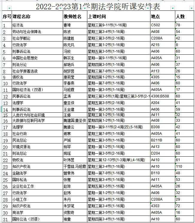 为了提高学院教学质量,加强学院领导与课堂的联系,特安排本次院领导、系主任进课堂听课活动,本学期听课时间从10月10日开始,至11月10日截至,院领导听课不少于3次,教学院长、系主任、副系主任听课不少于6次,并于11月30日之前上交本学期听课记录本。具体听课安排见下图,也请被听课的老师提前做好安排。