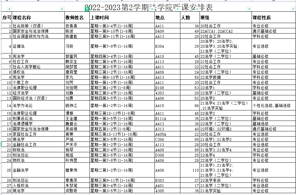 为了提高学院教学质量,加强学院领导与课堂的联系,特安排本次院领导、系主任进课堂听课活动,本学期听课时间从3月21日开始,至4月21日截至,院领导听课不少于3次,教学院长、系主任、副系主任听课不少于6次,并于5月30日之前上交本学期听课记录本。具体听课安排见下图,也请被听课的老师提前做好安排。