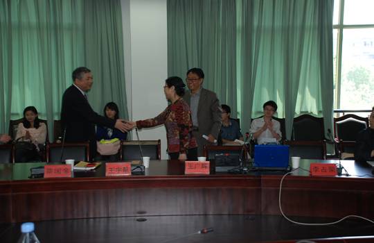 讲座前,先进行了兼职教授的聘任仪式。王宇航副书记为王广辉教授颁发浙江财经学院兼职教授聘书。