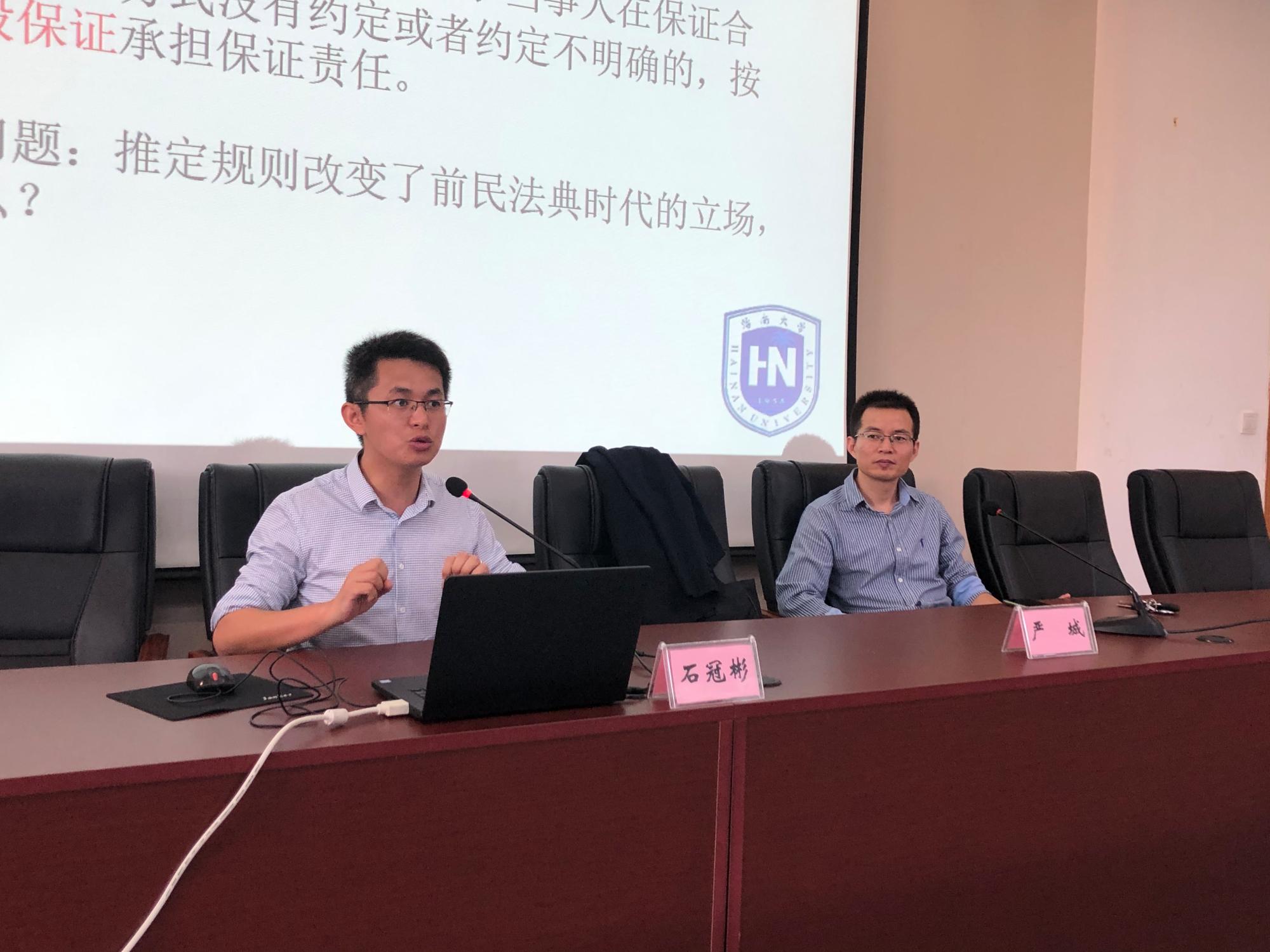 10月14日上午,中国民法学研究会理事、中国商法学研究会理事、海南大学博士生导师石冠彬教授应邀来院,为师生们作了一场题为“民法典保证合同制度的理解与适用”的学术讲座。本次讲座由色色动画