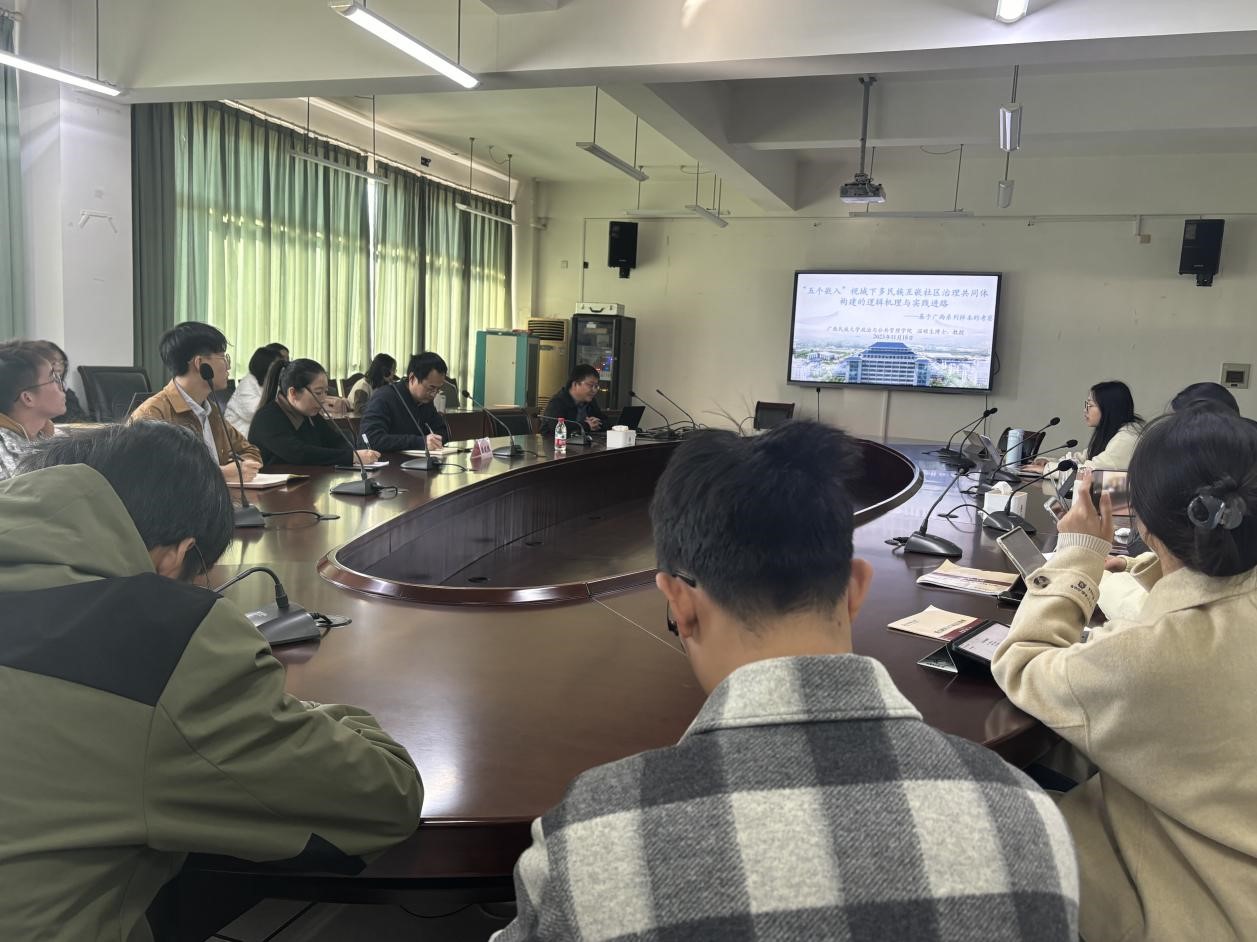 师生带来一场以《“五个嵌入”视域下多民族互嵌社区治理共同体构建的逻辑机理与实践进路》为题的学术讲座。讲座由社会工作系主任陈建胜教授主持,相关专业教师和学生聆听讲座。