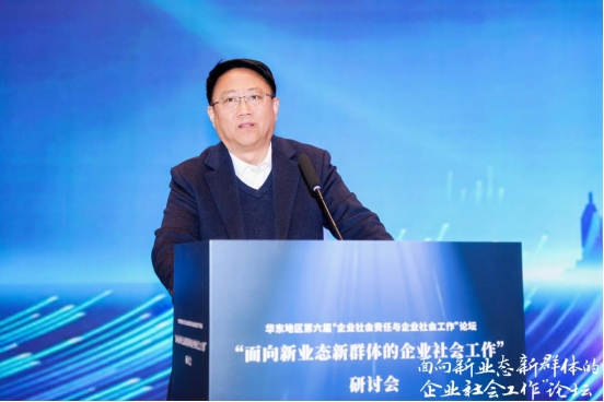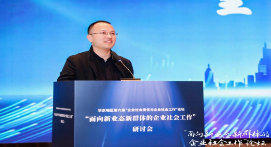 华东理工大学社会与公共管理学院副院长杨发祥教授介绍了“两企”“三新”与企业社会工作的新使命,分享了党建领“新”、服务暖“新”、治理用“新”的发展态势,指出做好“两企三新”党建社会工作关键在“实”,认为新时代企业社会工作担负发展的新使命。