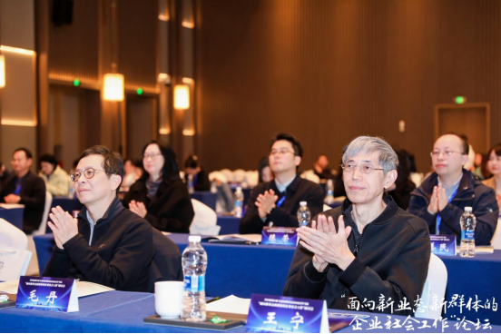 中国社会工作教育协会企业社会工作专业委员会顾问张默在致辞中表示,企业社会工作应积极主动回应经济组织、新社会组织、新就业群体,强化为“三新”提供专业化服务,助力社会治理体系与治理能力现代化。浙江省微笑明天慈善基金会秘书长申屠媛艳在致辞中认为,此次论坛把政学企社链接在一起,搭建了一个交流的平台,推动了企业社会工作的创新.