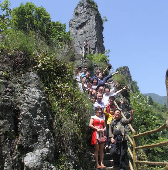 第二天,教师们又来到位于浙皖交界处十门峡景区,十门峡的清凉峰是国家级自然保护区内,地处临安西部,目前以剑门、龙门两大景区为主。十门峡综合旅游资源之丰富冠盖全国名山,“十门千峰擎日月,剑门千丈锁天地”,层峦叠嶂,飞瀑流泉,奇景成群,百里峡谷沟壑纵横,奇峰林立,峰插云天,雄奇险峻,美轮美奂。蜿蜒的山路上一路都是瀑布、亭子、山花。美丽的映山红,原始的灌木丛,让久久蜗居在城市里的老师们兴奋不已,陶醉在这美轮美奂的景色中了。