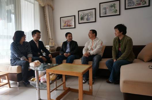 在听取广大教师意见后,进一步完善“家访制”制度。从原先单一的走访看望老师家庭,转化为在走访看望过程中上门征求意见,不断改进学院班子的工作作风,切实提高为广大师生服务的质量。日前,学院党总支书记蔡国金、党总支副书记罗金艳、副院长蒋铁初、副院长李政辉、分工会主席康莉莹、行政办公室主任章琳一行,走访看望了钱叶芳老师、张旭勇老师、汪庆红老师和唐勇老师家。学院领导深入了解各位教师的生活、工作状况,征求教师们对学院工作的意见和建议,送去了学院的关怀和问候。