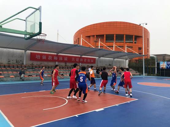 比赛前,各位老师精心准备,作为队长的王俊老师及时在场边给队员进行战术指导。哨声响起,在老师与同学的加油和助威声中开始精彩激烈的比赛。双方队员在比赛中生龙活虎:你快攻、我抢断、你突破、我上篮。比赛高潮跌起,比分交错上升,阴冷的天气并没有使老师们的热情消减。比赛中,队员们拼抢积极,奋勇争先,将个人的特长与团队的协作充分发挥;现场紧张而热烈,场面精彩纷呈,赢得了现场观战师生的阵阵喝彩。