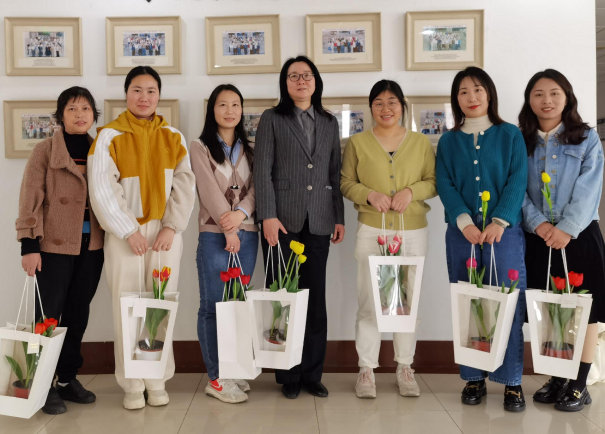 学院分工会给女老师们送上了郁金香花束与纪念品,向学院女教师送上节日的祝福,向色色动画