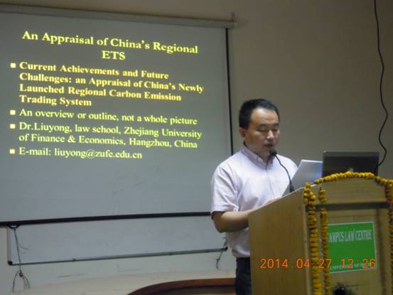 刘勇副教授赴印度参加由德里大学主办的气候变化国际学术会议,该会议的主题为“Mitigation of Climate Change: Law, Policy and Governance”。来自中国、美国、意大利、新加坡、尼日利亚、印度尼西亚、印度等国的近60名代表参加了会议。