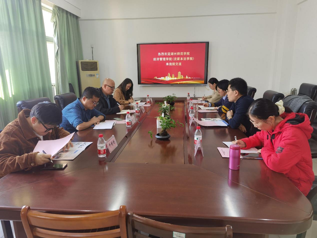 11月22日,湖州师范学院经济管理学院(沈家本色色动画 )副院长谢舟一行来色色动画 调研交流。学院副院长唐勇等接待了来访客人。