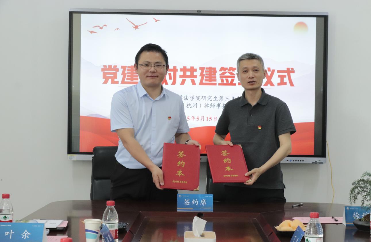 党委副书记、纪委书记胡哲主持。学院党委书记丁洪,研究生第三党支部书记、专职辅导员徐稼钰,副书记蒋黎,中伦文德(杭州)律师事务所支部副书记、房地产与建设工程部主任赵鹏,合伙人叶余、李帅,律所支部宣传委员袁娟娟,出席活动。
