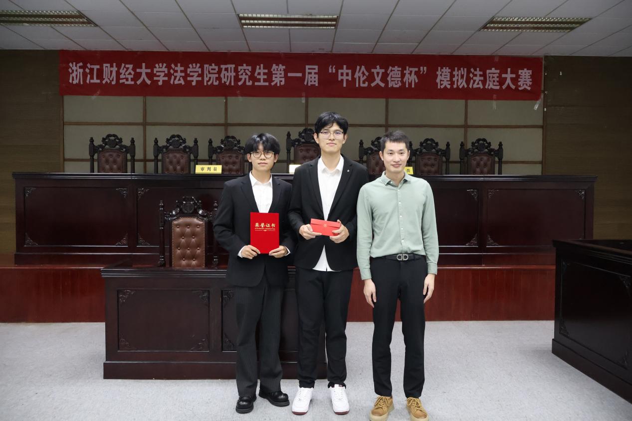 经过现场4支队伍的法理交锋与逻辑博弈,在各位评委的评审下,本场大赛迎来了悬念揭晓的璀璨时刻。获得最佳书状的是打完赶紧开派队与二人转队,获得最佳辩手的是周书恒选手,获得本次模拟法庭大赛季军的是打完赶紧开派对与输了就怪领队,获得亚军的是二人转队,获得冠军的是炸炸炸队。