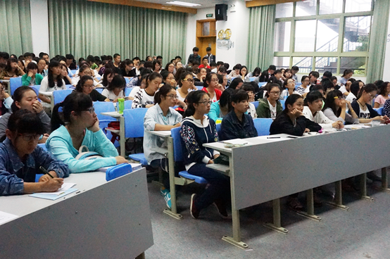 楼101教室召开2015级年级大会。院团委书记、年级辅导员王文婷主持并主讲主题内容。