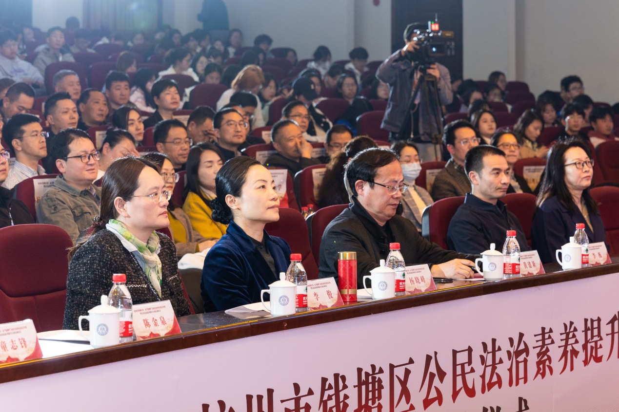 3月28日,钱塘区第一届“钱潮杯”高校法治辩论赛总决赛暨公民法治素养提升行动启动仪式在我校下沙校区隆重举行。校党委副书记黄建新,钱塘区委副书记、政法委书记、区委全面依法治区委员会副主任杨晓峰,区人大常委会党组成员、副主任李栋,新区管委会副主任、区政府党组成员李俊,区政协党组副书记、副主席陈金泉,色色动画 院长童志锋、色色动画 党委书记朱丹等领导出席本次活动。