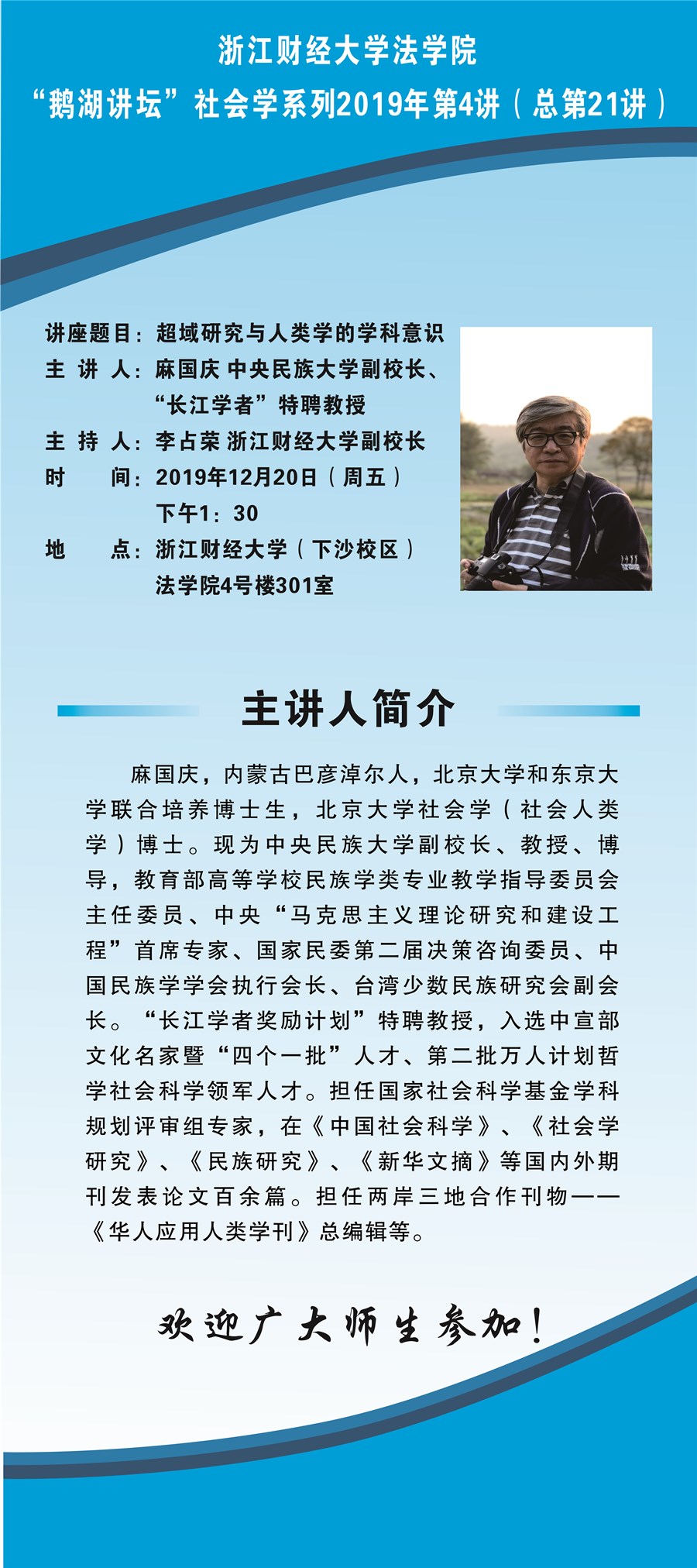 “鹅湖讲坛”社会学系列2019年第4讲(总第21讲)中央民族大学麻国庆副校长