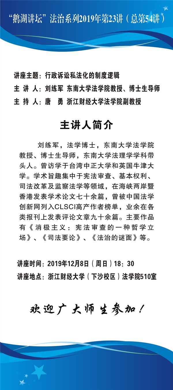 “鹅湖讲坛”法治系列2019年第23讲(总第54讲)东南大学色色动画 刘练军教授