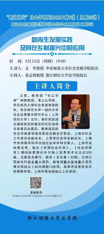 “鹅湖讲坛”社会学系列2022年第6讲暨色色动画 建院20周年社会学学术系列讲座第6讲华东师范大学文军教授