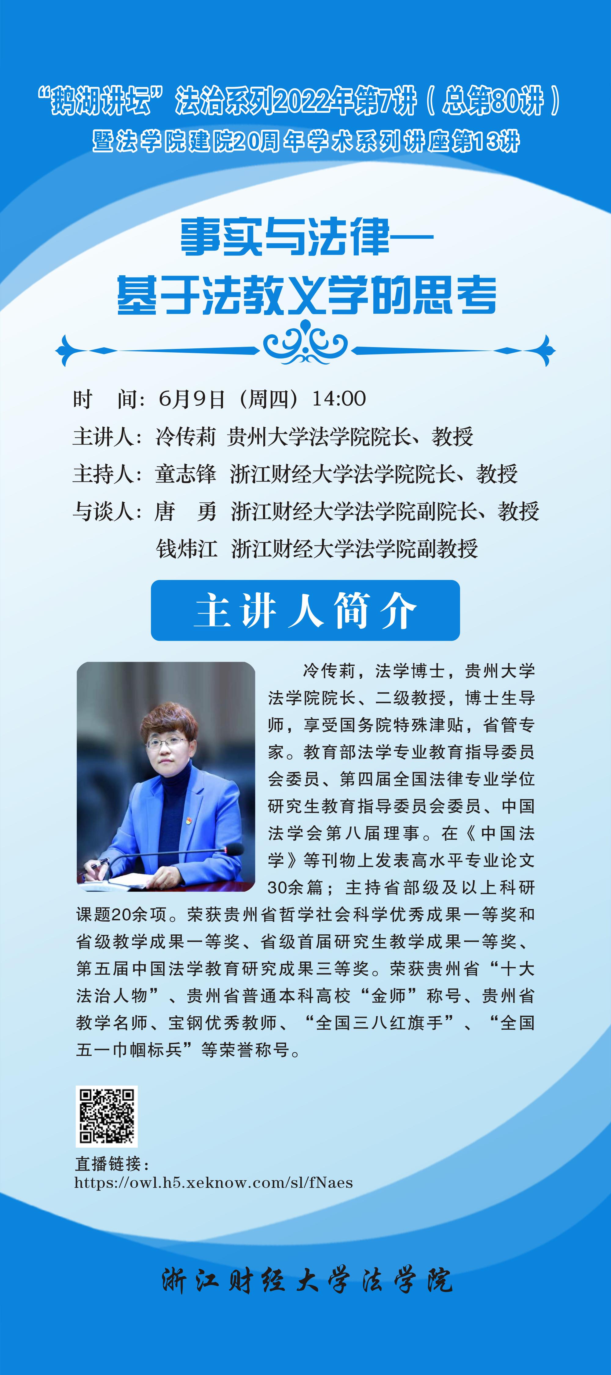 “鹅湖讲坛”法治系列2022年第7讲暨色色动画 建院20周年学术系列讲座第13讲贵州大学色色动画 院长冷传莉教授