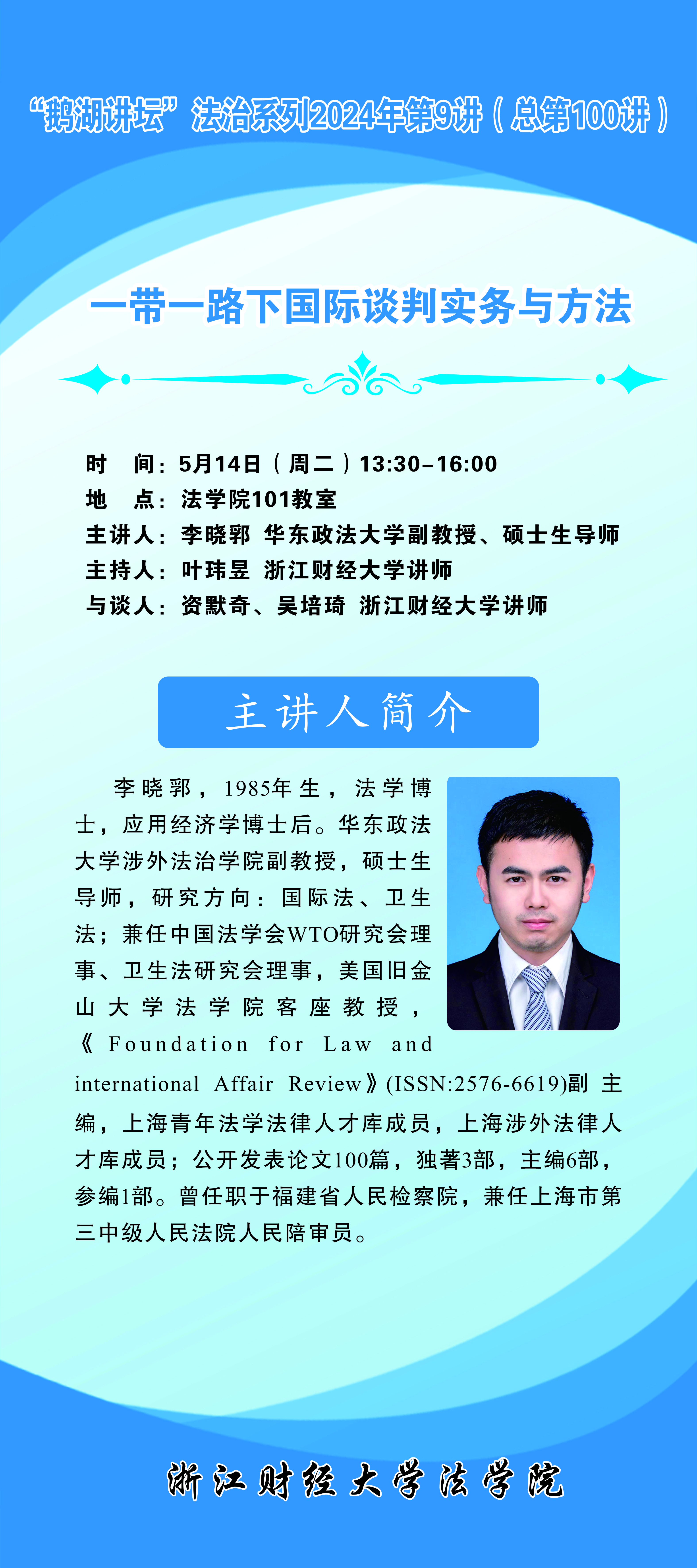 “鹅湖讲坛”法治系列2024年第9讲(总第100讲)华东政法大学李晓郛副教授