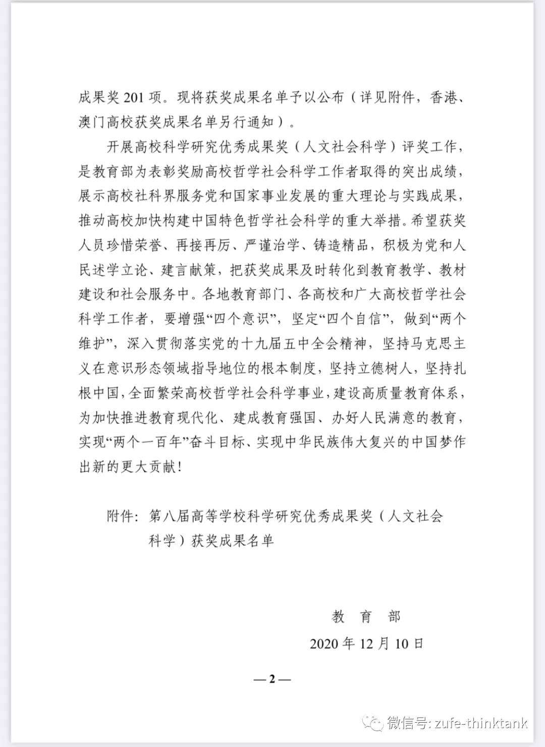 近日教育部发文《教育部关于第八届高等学校科学研究优秀成果奖(人文社会科学)奖励的决定》,全国1539项成果获奖。