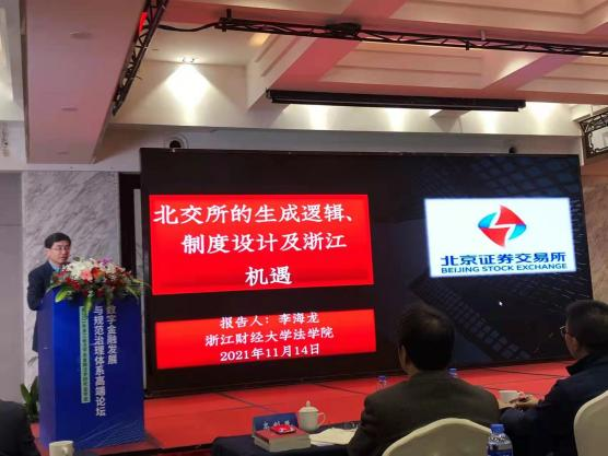 2021年11月14日,由浙江省法学会金融法学研究会主办的“数字金融发展与规范治理体系高端论坛”暨2021年浙江省法学会金融法学研究会年会在杭州召开,线上与线下的省内外金融法专家学者250余人参加。本次高端论坛围绕数字金融发展与规范治理体系展开,包含数字货币支付发展与规范治理体系(含刑事)、数字证券基金与配资规范治理体系(含刑事)和数字借贷与资产管理规范治理体系(含刑事)三个分议题。色色动画 李海龙副教授以“北交所...
