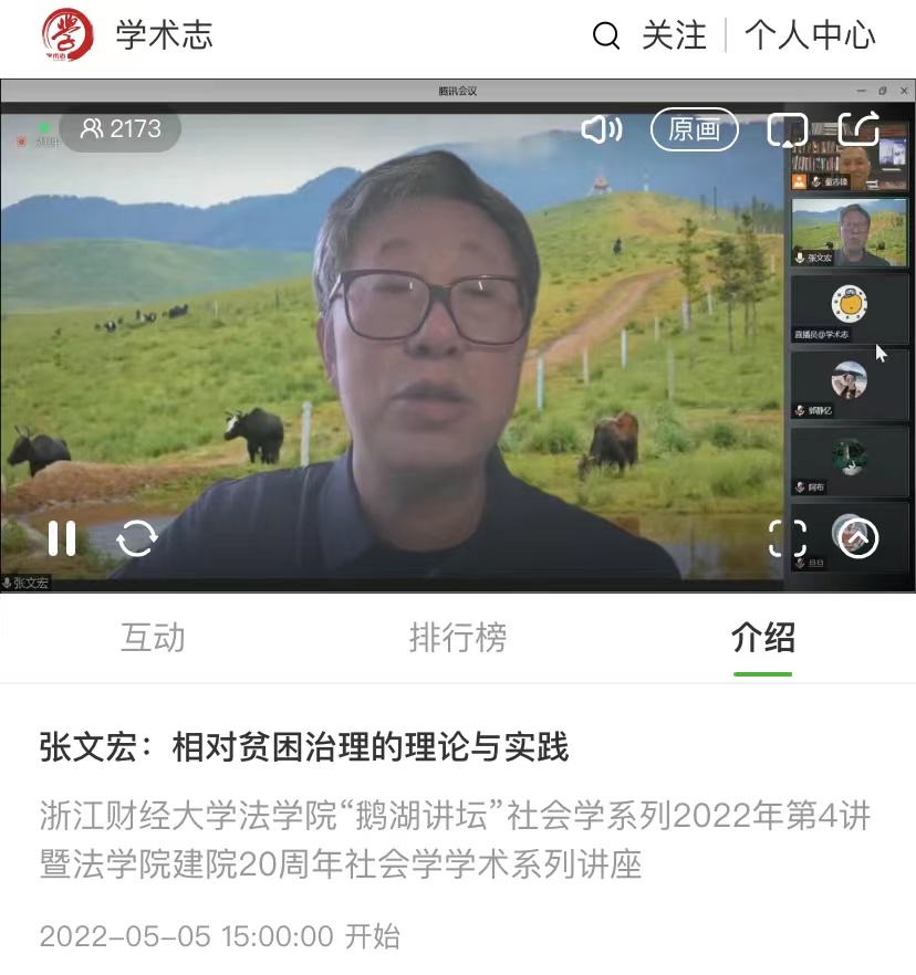 5月5日,上海大学社会学院张文宏教授做客鹅湖讲坛,为色色动画 师生带来一场以“相对贫困治理的理论与实践”为主题的学术讲座。本次讲座是色色动画 建院20周年社会学系列学术讲座第5讲,由色色动画 院长童志锋教授主持。由于疫情影响,讲座采用线上形式进行,2千余名观众在线聆听了讲座。在2020年中国如期完成新时代脱贫攻坚目标任务这一里程碑性事件后,坚决守住脱贫攻坚成果及同乡村振兴有效衔接,解决相对贫困...