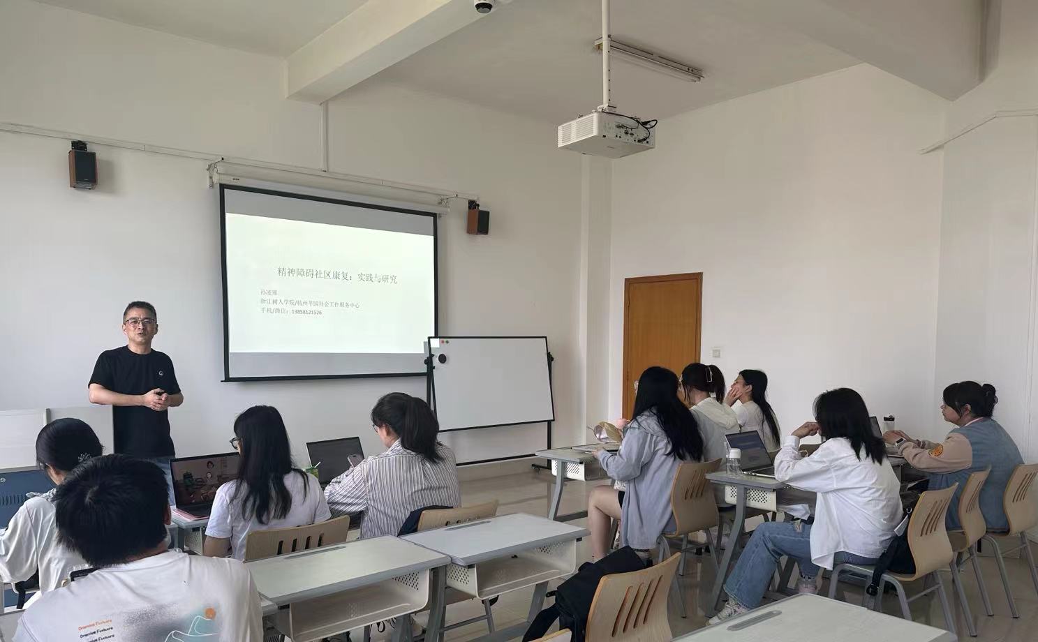 2024年6月13日上午,社工系邀请杭州芋园社会工作服务中心联合创始人、浙江树人学院社工系副主任孙凌寒老师来我校讲学,分享精神障碍社区康复的实践和研究。孙凌寒老师领衔的机构长期致力于为精神障碍人士提供专业服务,并与香港理工大学中国社会工作项目基金合作开展精神障碍社会工作实务、建立实习点及实务研究。社工系《心理障碍与社会工作》课程的MSW学生和《变态心理学》本科生现场聆听了分享。孙凌寒老师首先介绍了精神健...