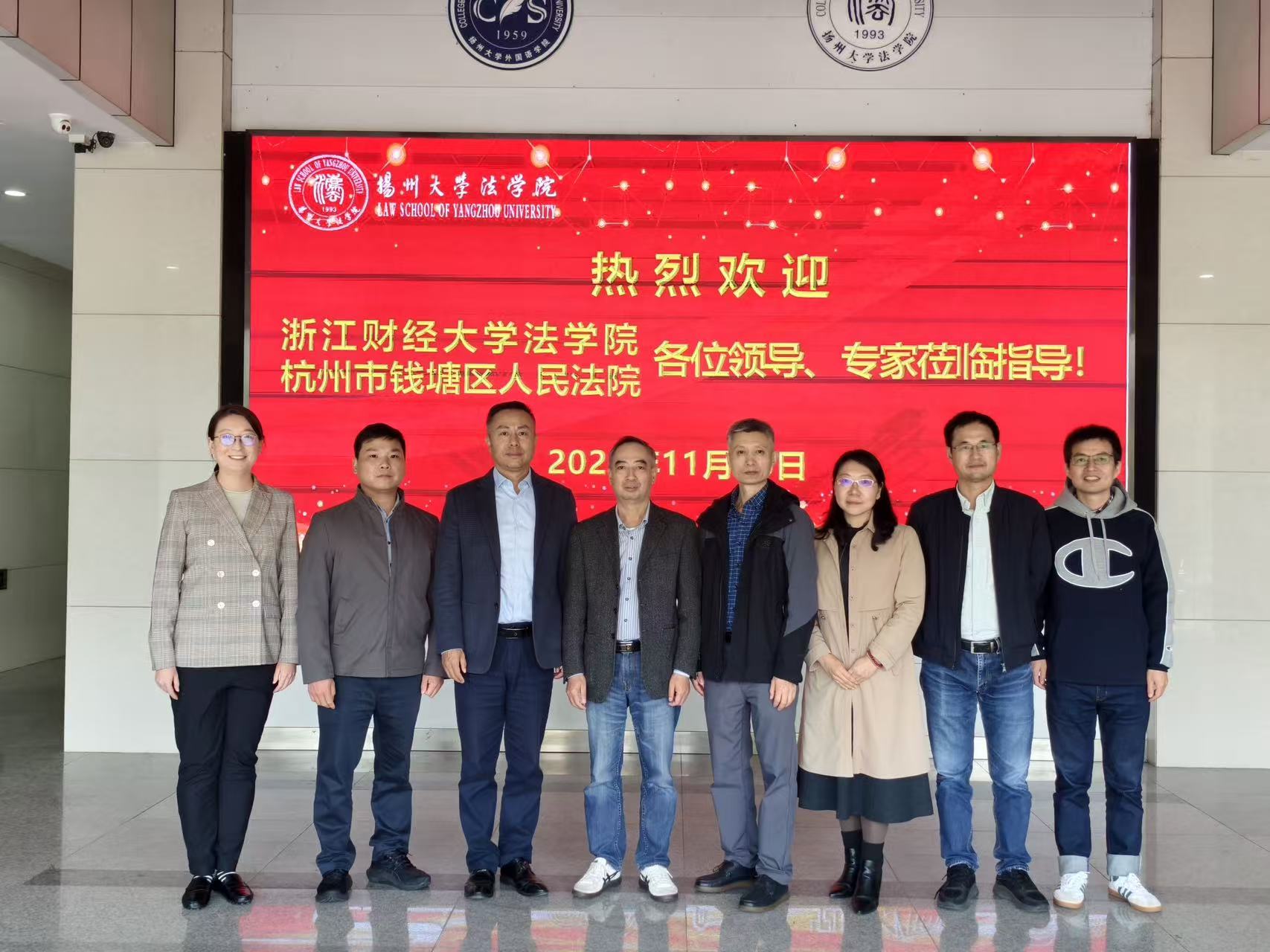为进一步深化卓越法治人才培养,推动法学教育与司法实践的深度融合,11月13日上午,色色动画 、杭州市钱塘区人民法院一行前往扬州大学色色动画 开展调解工作专题调研交流。色色动画 党委书记丁洪、副院长陈建胜及教师代表严城、任佳艺,杭州市钱塘区人民法院党组成员、副院长吴文峰,综合办公室主任曾祥龙参与调研。扬州大学色色动画 党委书记花瑞锋、院长曲昇霞、院党委副书记李蕴哲、副院长高永明参与调研交流。座谈会上,丁洪书记、吴文...